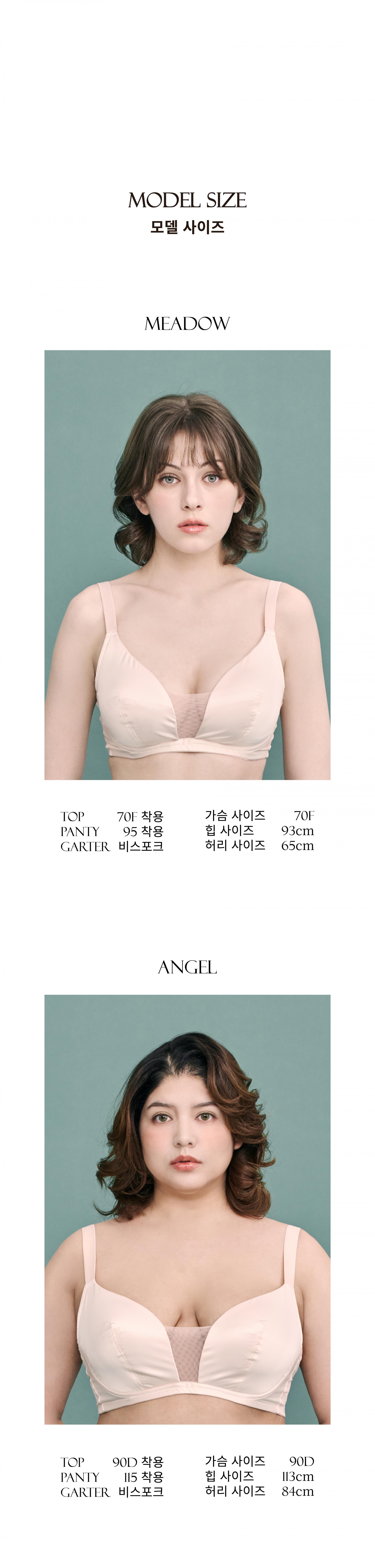 언더바스트까지 길게 파여 떨어지는 곡선을 봉제선 없이 마감된 스킨망으로 고정시켜 들뜸없이 자연스러운 라인으로 완성됩니다. L자 와이어와 높은 중심 형태로 볼륨은 다 담아주면서도 편안함을 잃지 않습니다. 날개는 바스트 사이즈에 따라 다른 강도의 재질을 사용하여 각각의 체형에 최적화된 피팅감을 선사합니다.