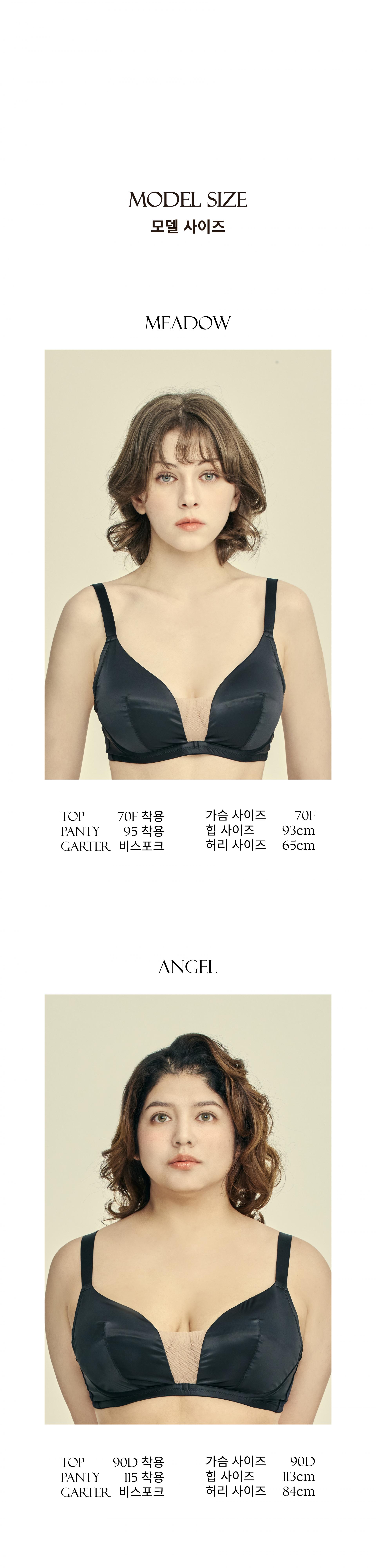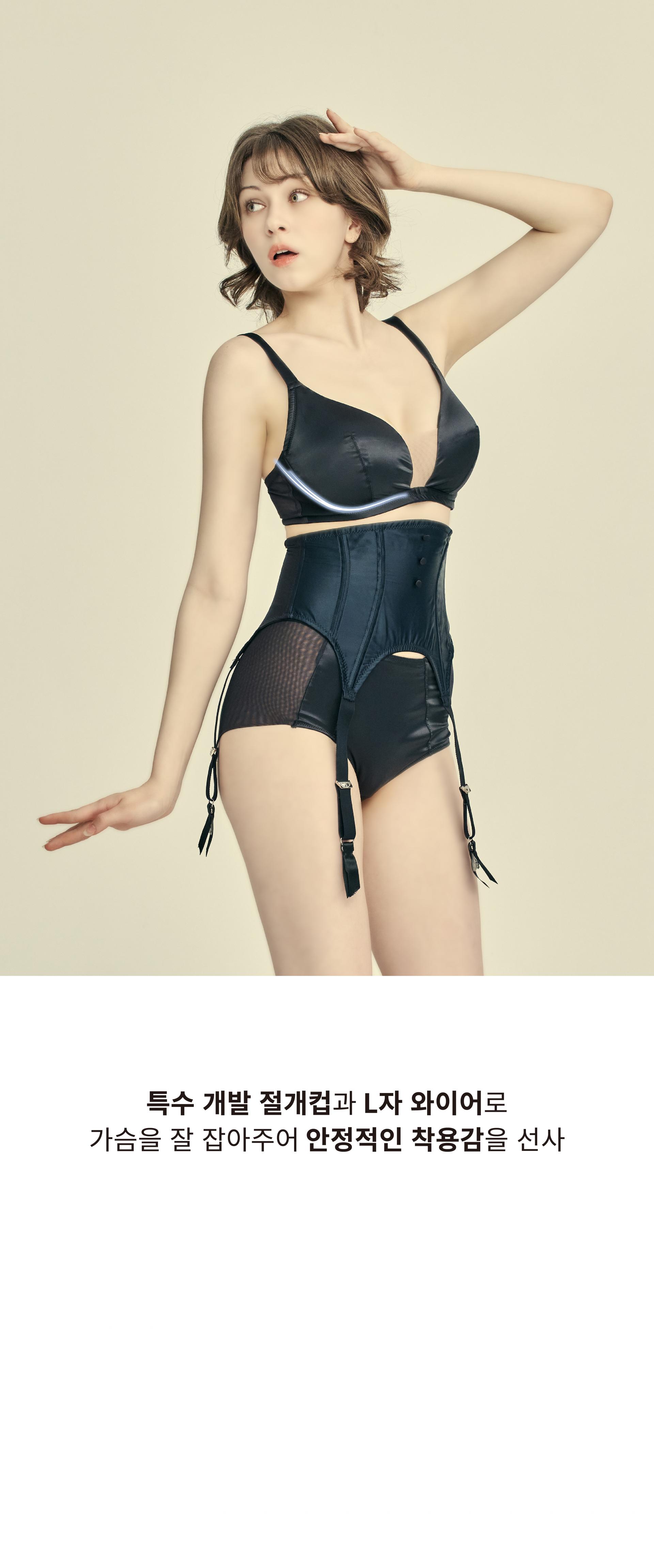 언더바스트까지 길게 파여 떨어지는 곡선을 봉제선 없이 마감된 스킨망으로 고정시켜 들뜸없이 자연스러운 라인으로 완성됩니다. L자 와이어와 높은 중심 형태로 볼륨은 다 담아주면서도 편안함을 잃지 않습니다. 날개는 바스트 사이즈에 따라 다른 강도의 재질을 사용하여 각각의 체형에 최적화된 피팅감을 선사합니다.