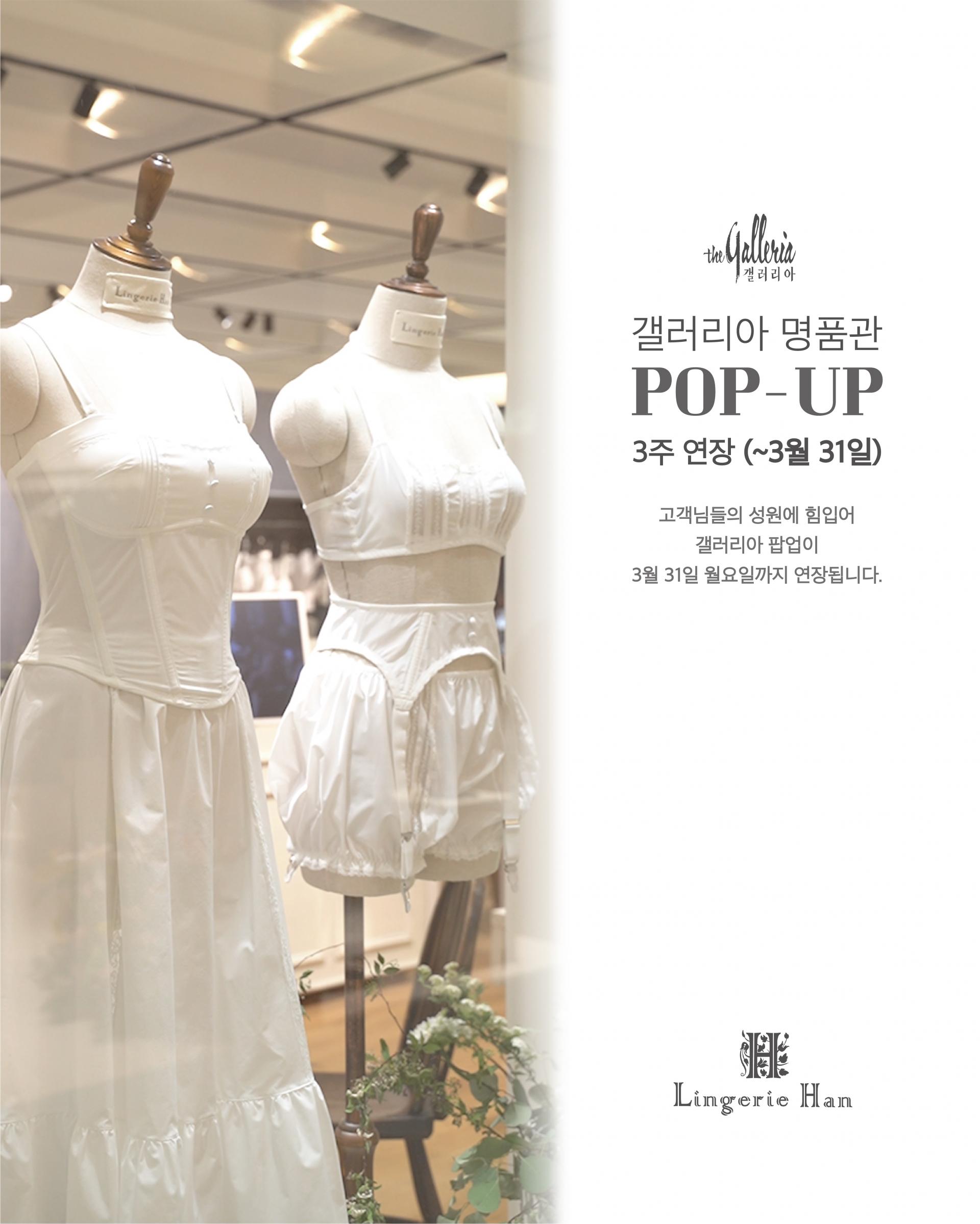 𝑳𝒊𝒏𝒈𝒆𝒓𝒊𝒆 𝑯𝒂𝒏 𝑿 𝑮𝒂𝒍𝒍𝒆𝒓𝒊𝒂 𝑾𝒆𝒔𝒕 𝑷𝑶𝑷-𝑼𝑷고객님들의 성원에 힘입어백화점측의 제안으로 갤러리아 팝업이3월 31일 월요일까지 연장됩니다.